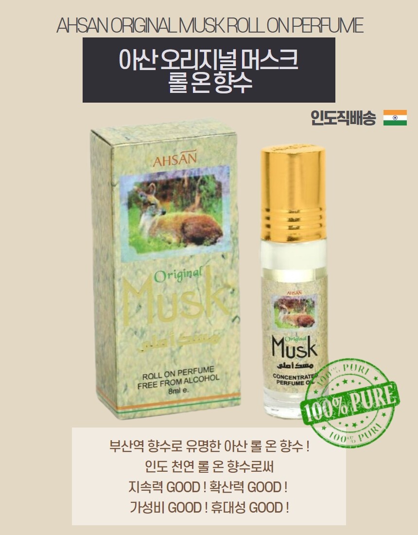 인도 아산 오리지널 머스크 롤 온 향수 부산역 향수 알콜프리 6개 무배 AHSAN Original Musk Roll On Perfume 8ML 6pc