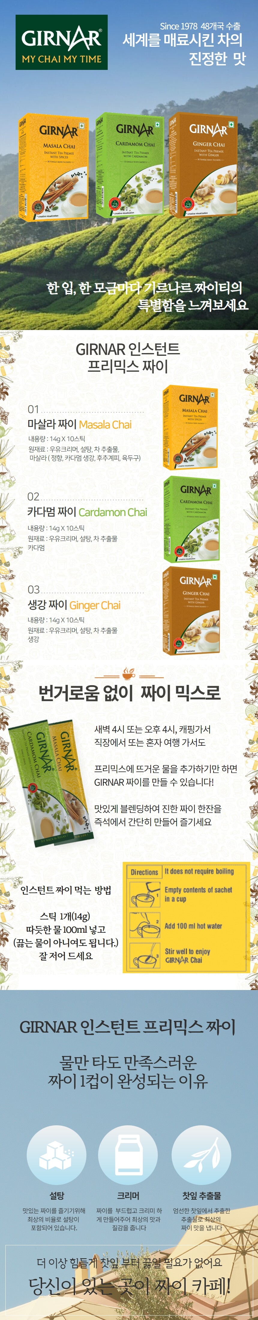 Girnar 인스턴트 카다멈 짜이 인도식 밀크티 10봉
