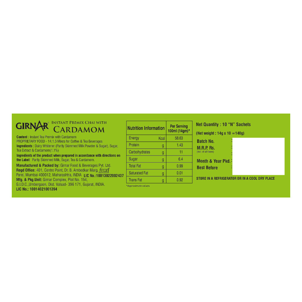 Girnar Cardamom Chai instant tea premix with Cardamom 10sachets