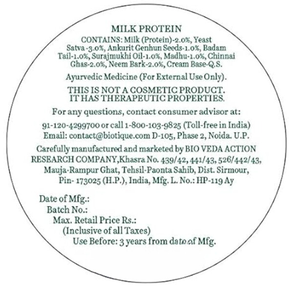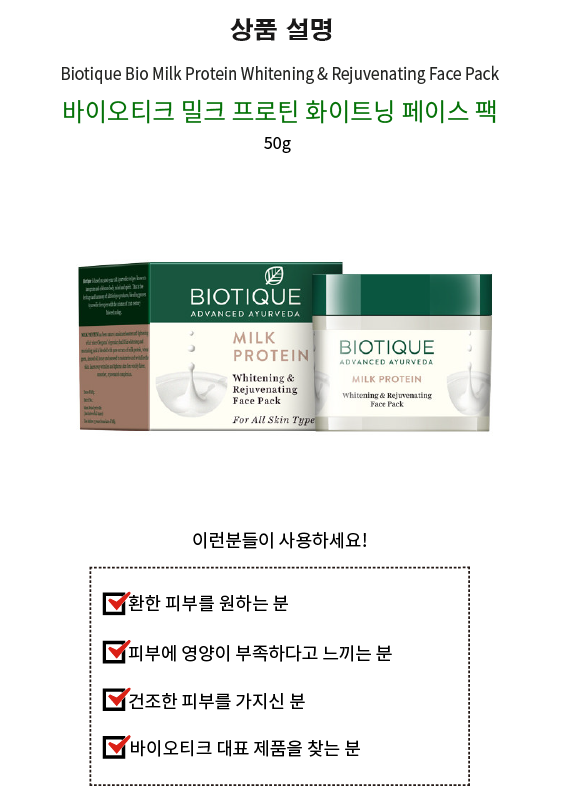 우유 단백질, 밀 배아, 아몬드 오일, 꿀, 해초의 순수 추출물 함유