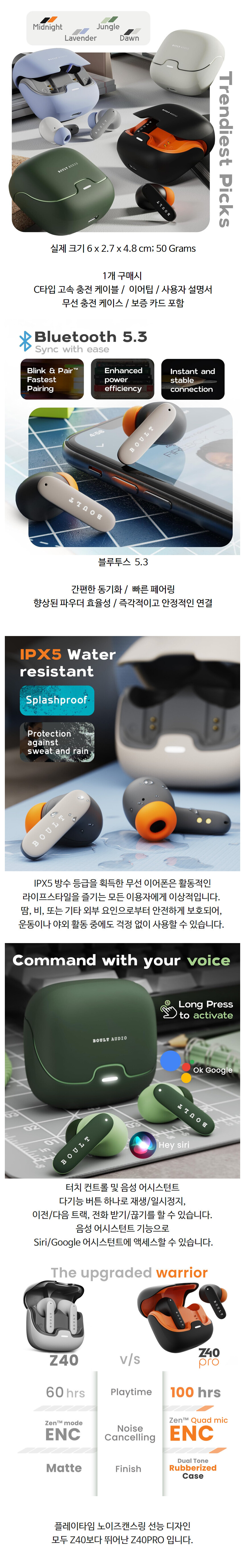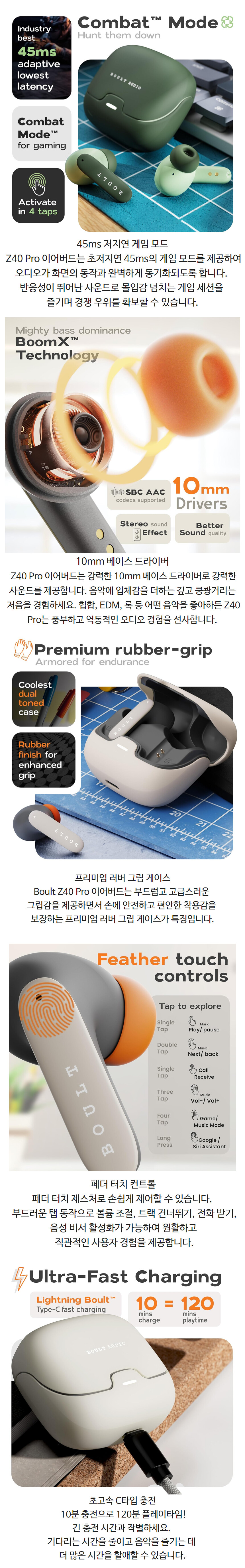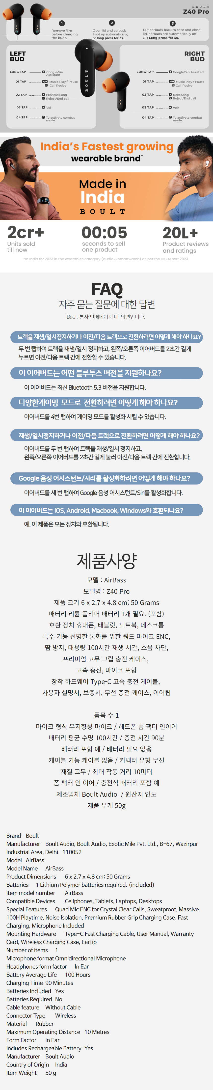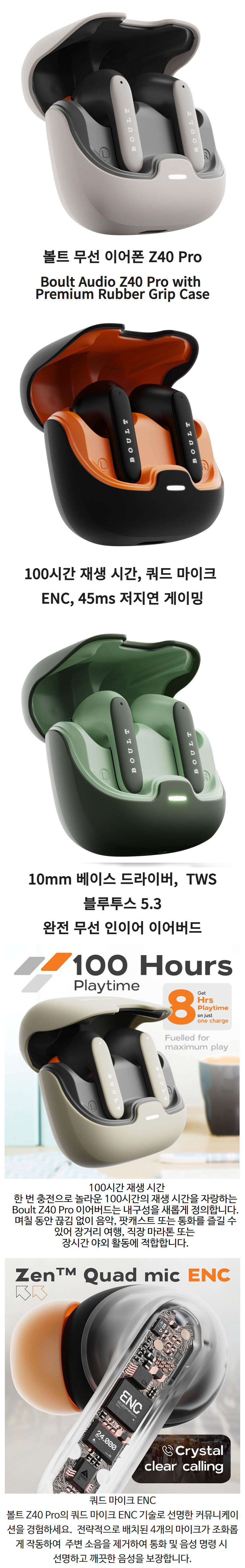 인도 블루투스 게이밍 이어폰 Boult Z40 Pro 100시간 재생 시간, 쿼드 마이크 ENC, 45ms 저지연 게이밍, 프리미엄 고무 그립 케이스, 10mm 베이스