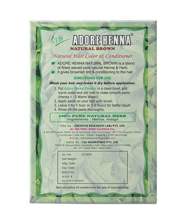아도레 헤나 내추럴 브라운은 정교하게 체에 거른 순수한 천연 헤나 & 허버스의 혼합물입니다.