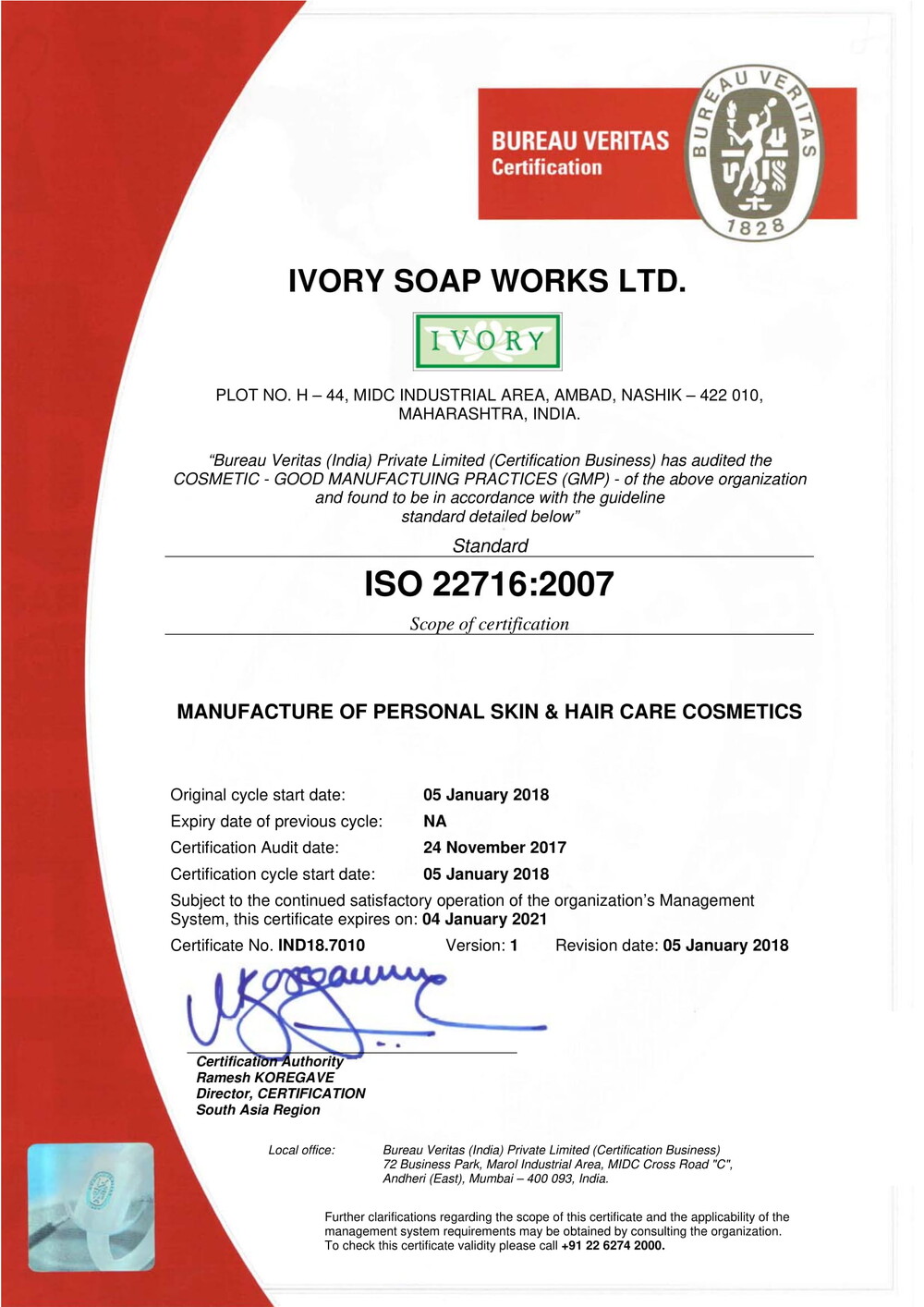 뷰로베리타스(BUREAU VERITAS)에서 인증받은 제조사입니다.