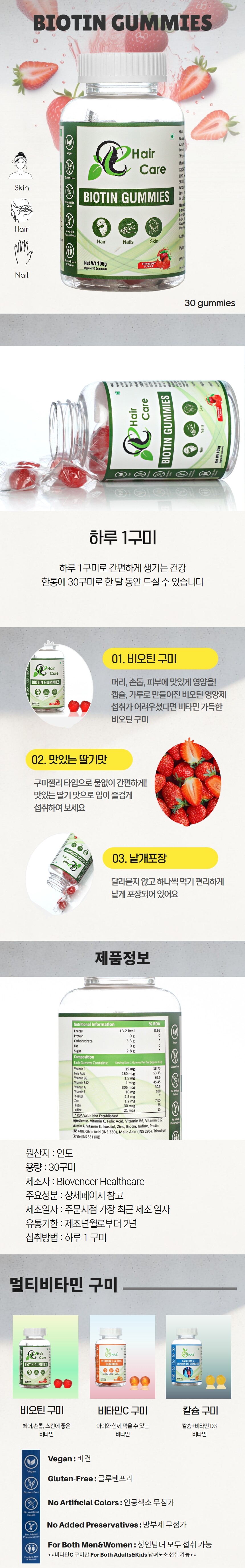 BIOTIN GUMMIES 30 gummies 헤어 피부 영양 비타민 구미 젤리 영양제