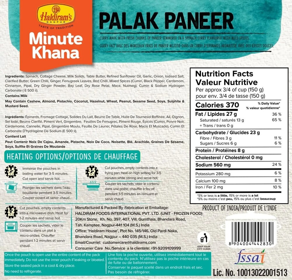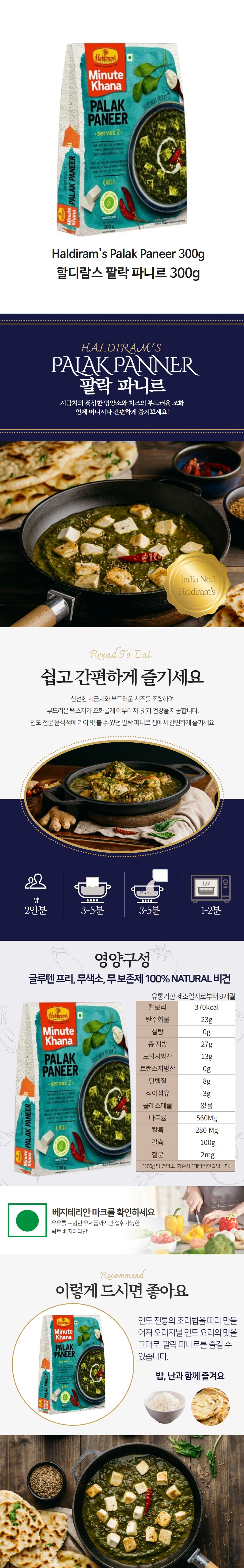 할디람스 팔락파니르 커리 인도커리 비건카레