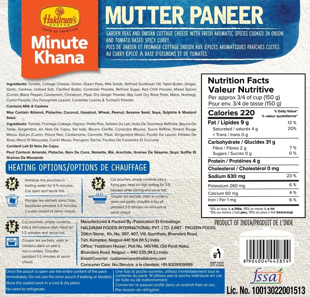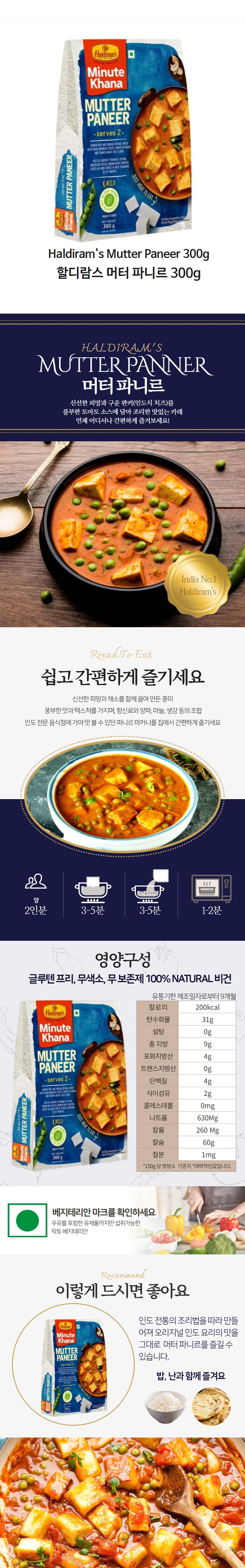 할디람스 머터 파니르 커리 인도커리 비건카레