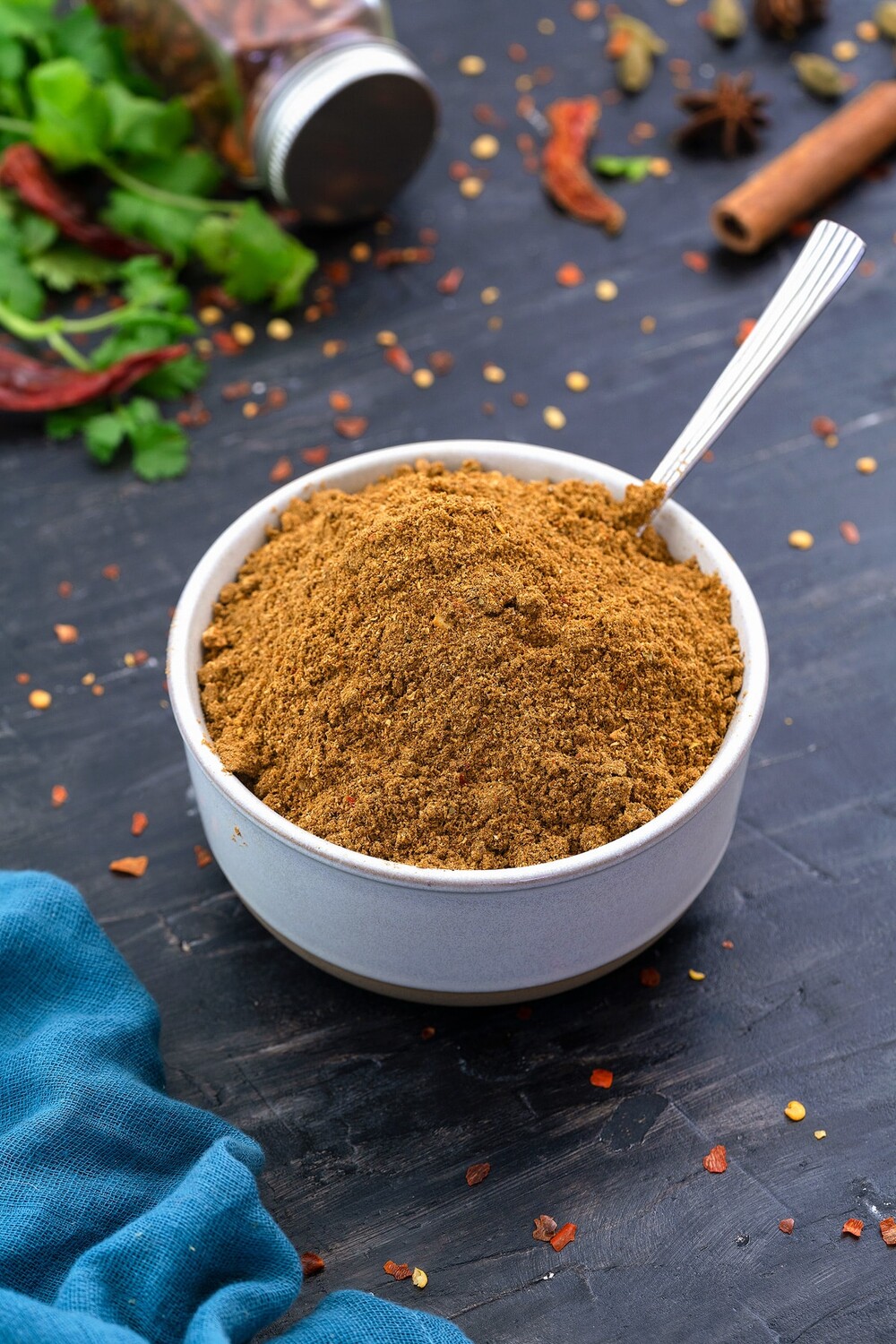 향이 강한 향신료와 후추를 가루로 만들어 매운맛을 내는 향신료 입니다.