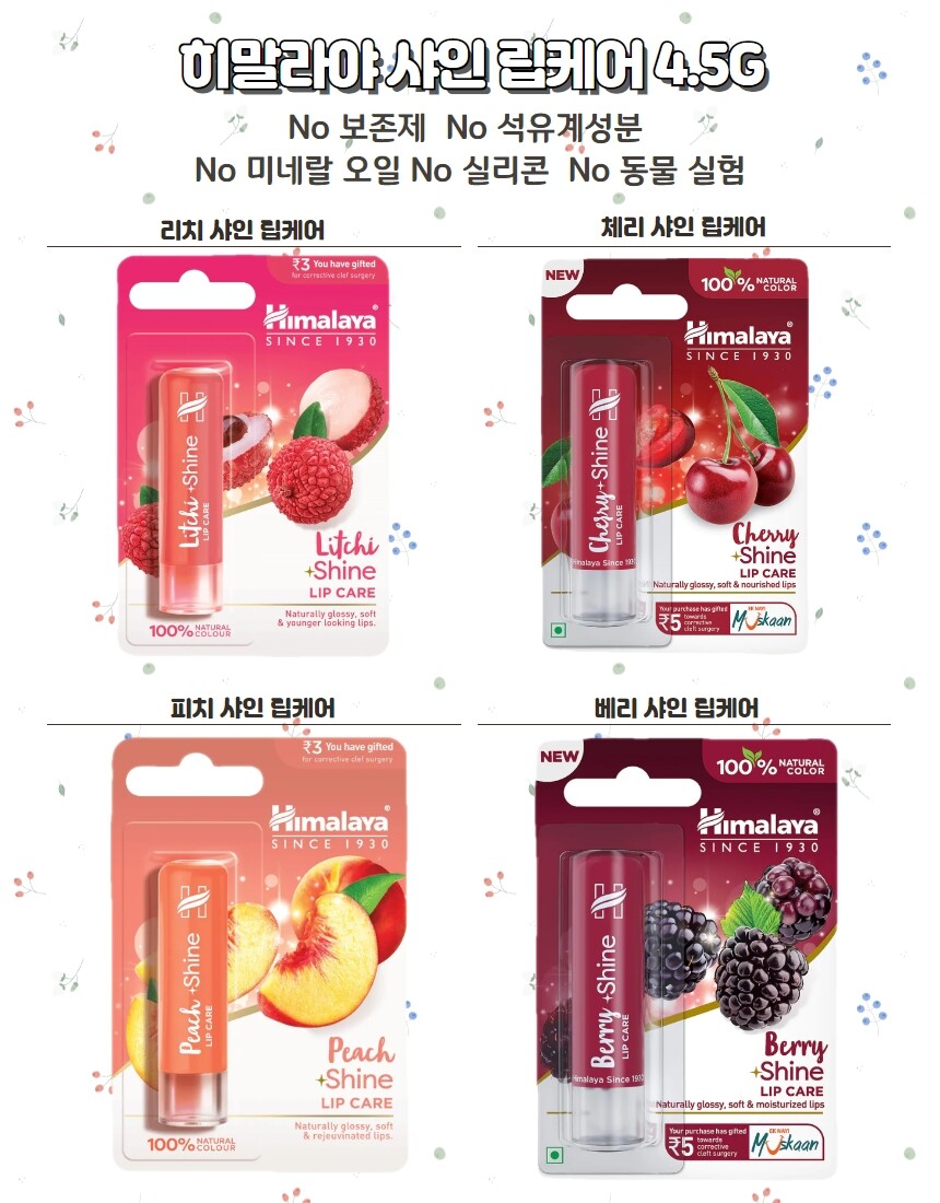 히말라야 샤인 립케어 4.5g 리치 체리 베리 피치 천연색소