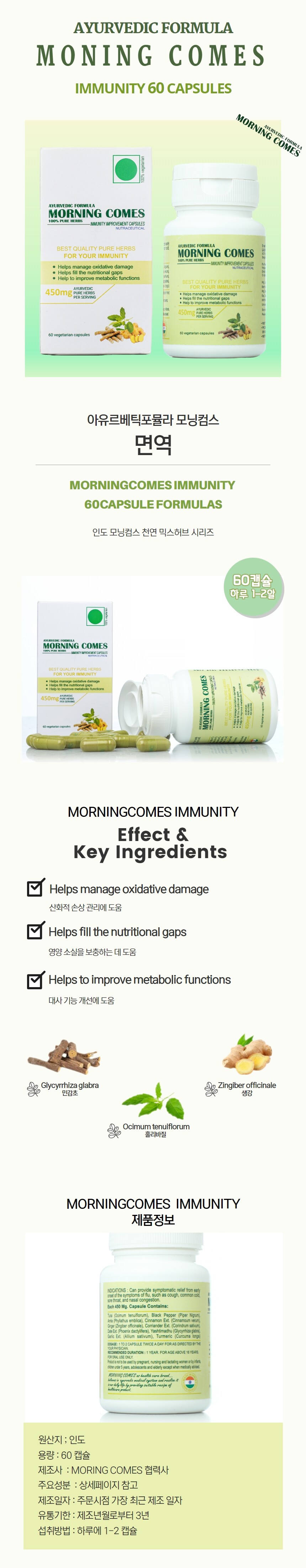 모닝컴스 포물랴 면역 부스터 6통 360캡슐 Morningcomes Immunity booster