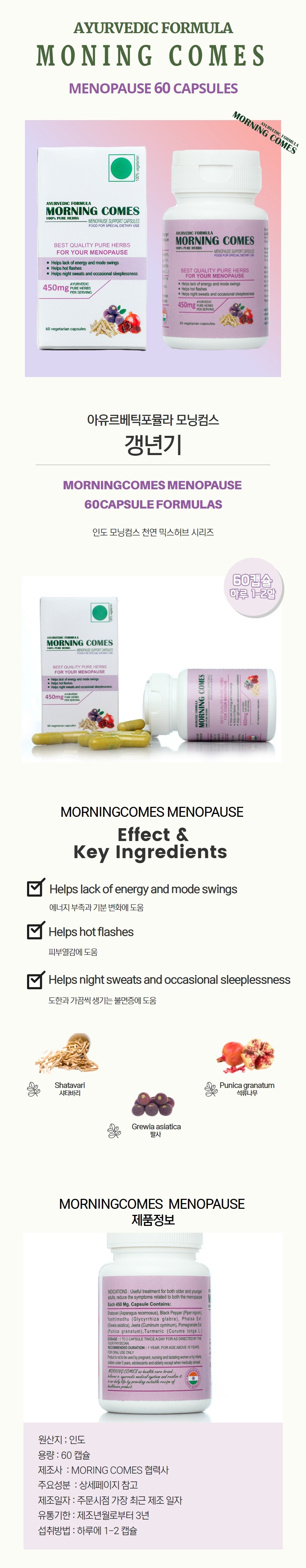 모닝컴스 포뮬랴 갱년기 60캡슐 Morningcomes Menopause 60capsule
