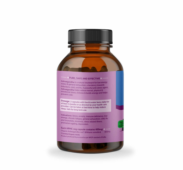 Each vegetarian 400 mg capsule of Ashwagandha contains