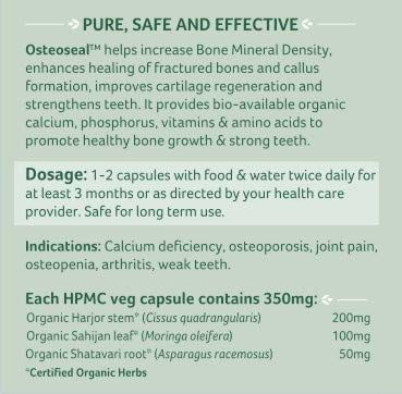 Each ORGANIC INDIA Osteosea HPMC veg capsule contains 350mg:
