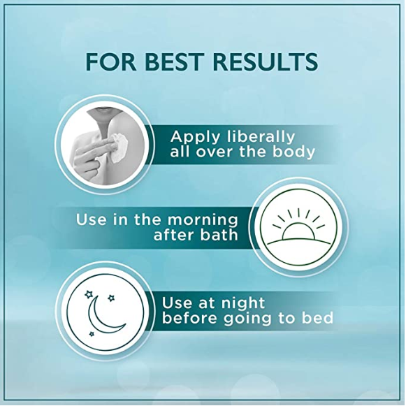 Apply nourishing body lotion gently all over the body, with special attention to severely dry areas, slowly massaging it in. Best used after bathing when your skin is most receptive to hydration.